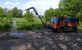 Kehrmaschine mit Schwemmbalken